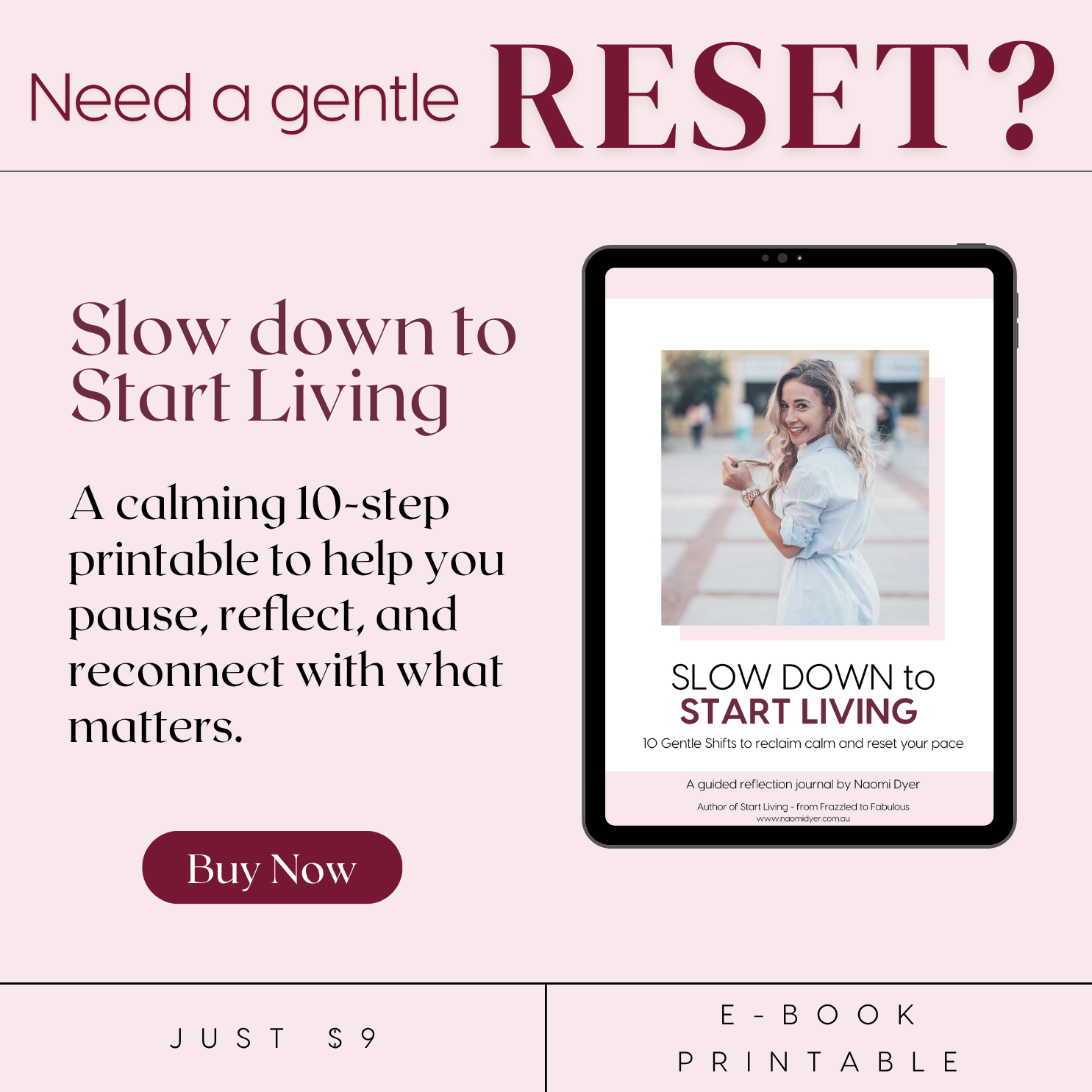 Founded by Naomi Dyer, Start Living® is a lifestyle brand dedicated to helping women feel calm, clear, and connected again — through practical tools, relatable stories, and simple practices that support a more intentional life.